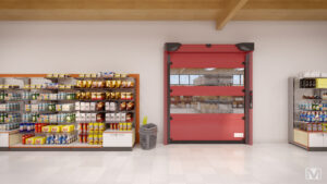 Thanks to its versatility and ease of installation, the Mavione door can be used in indoor environments where rapid and reliable openings are necessary. It meets the requirements of industrial facilities that need frequent and efficient access, such as storage warehouses, loading docks, production areas, and many others.