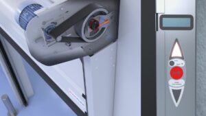 Outre ses caractéristiques de propreté, la porte Maviclean offre des fonctionnalités avancées pour une performance optimale. Elle est équipée d’un moteur intégré dans la traverse avec un entraînement par courroie, ce qui garantit un fonctionnement fluide et silencieux.
